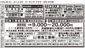 1月29日(月)~2月3日(土)西部日刊スポーツ新聞「日刊ワーキングプラザ」 ☆日払い★高収入☆短期★長期☆アルバイト★正社員☆